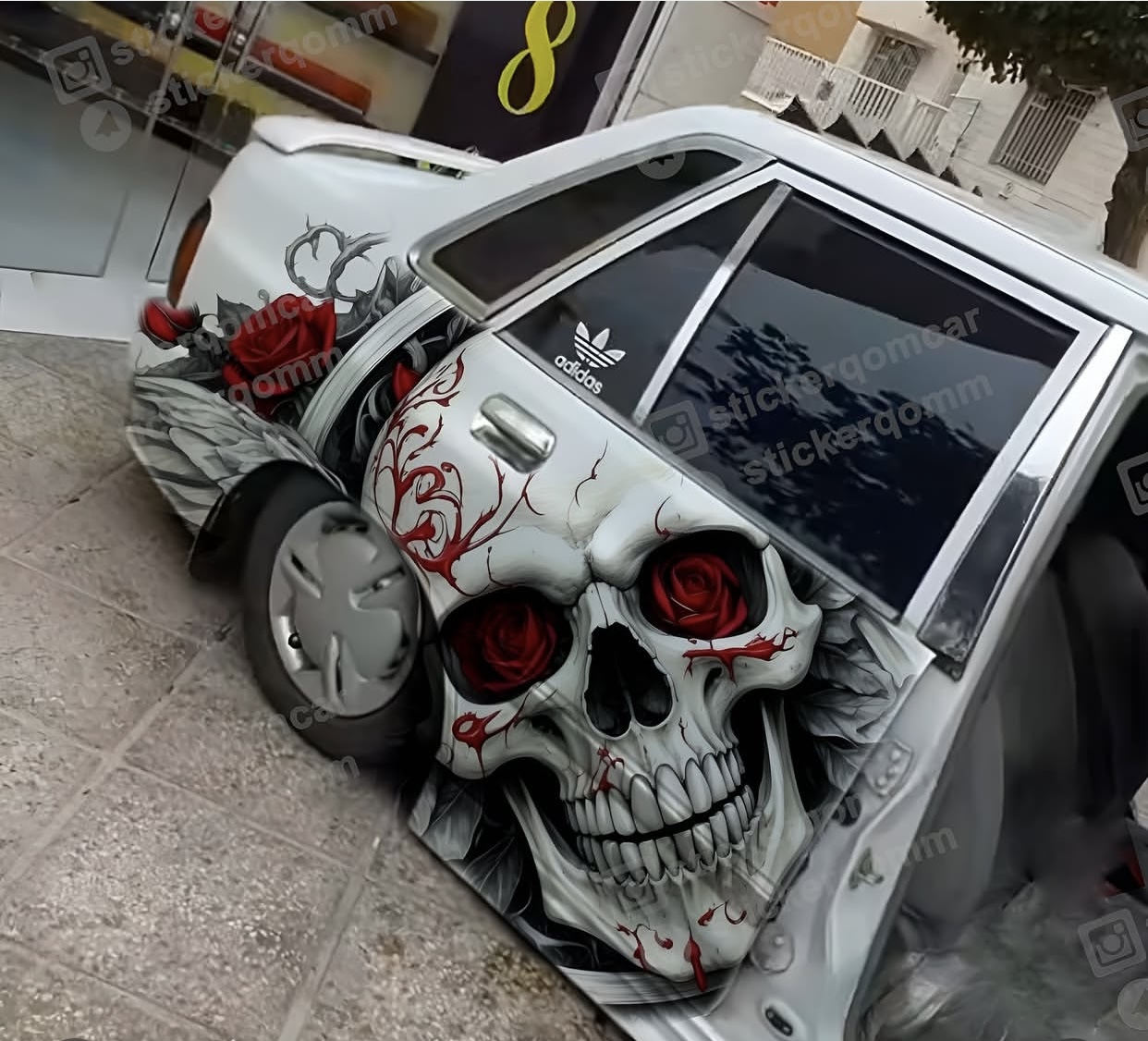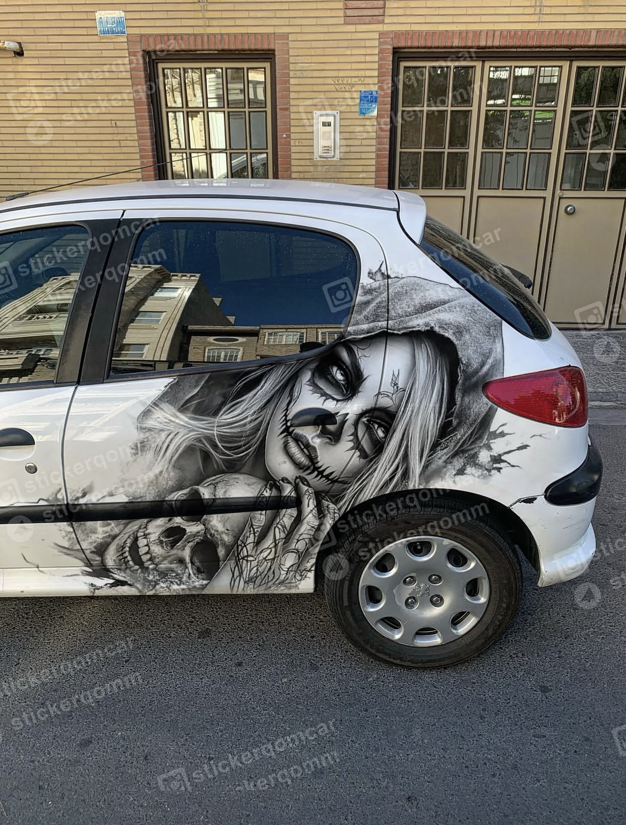 استیکرماشین بغل درب طرح جمجمه