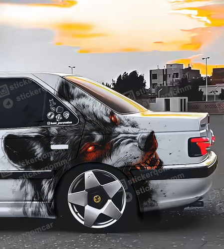 استیکر برچسب ماشین طرح بغل درب خودرو طرح گرگ وحشی